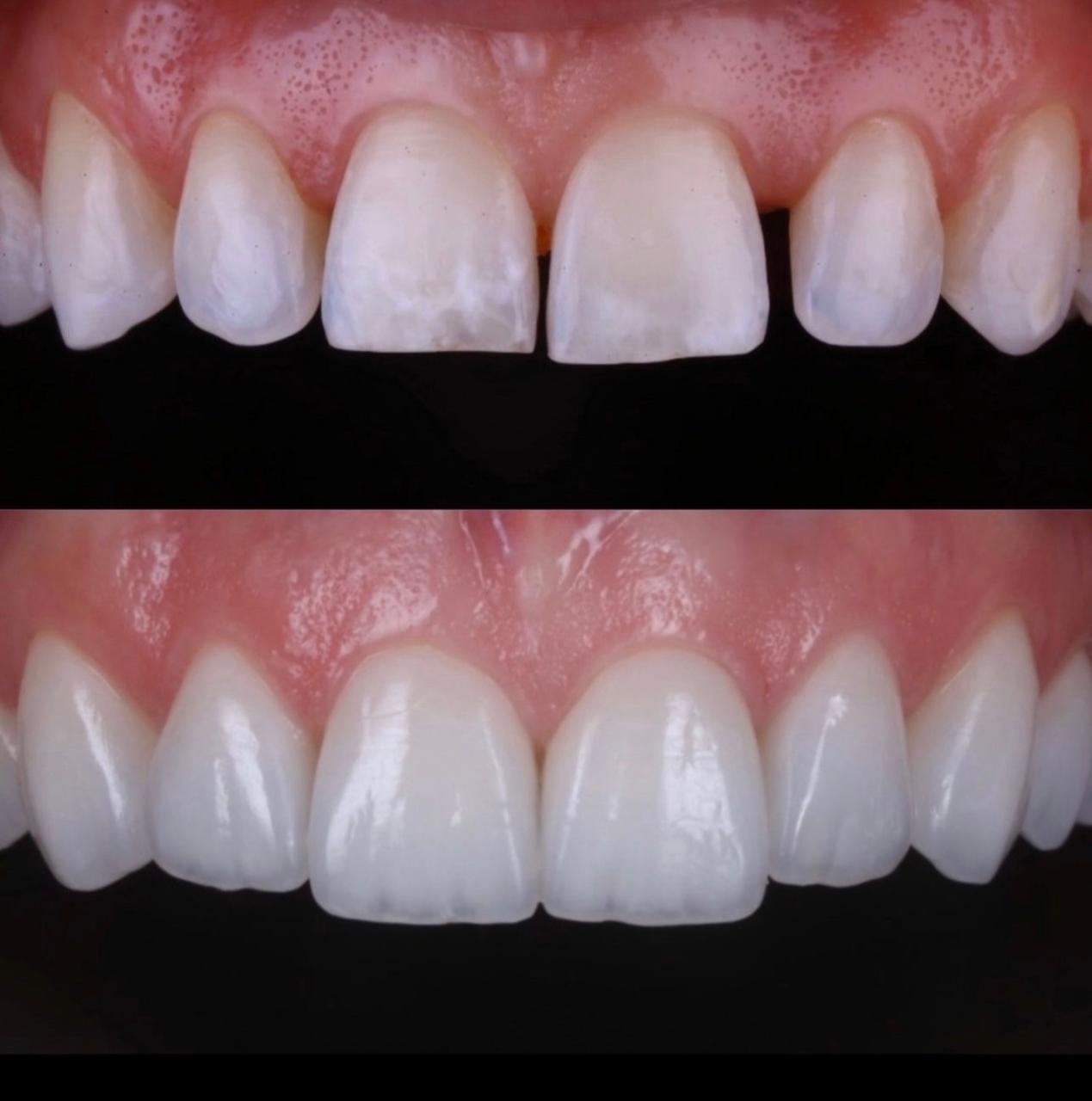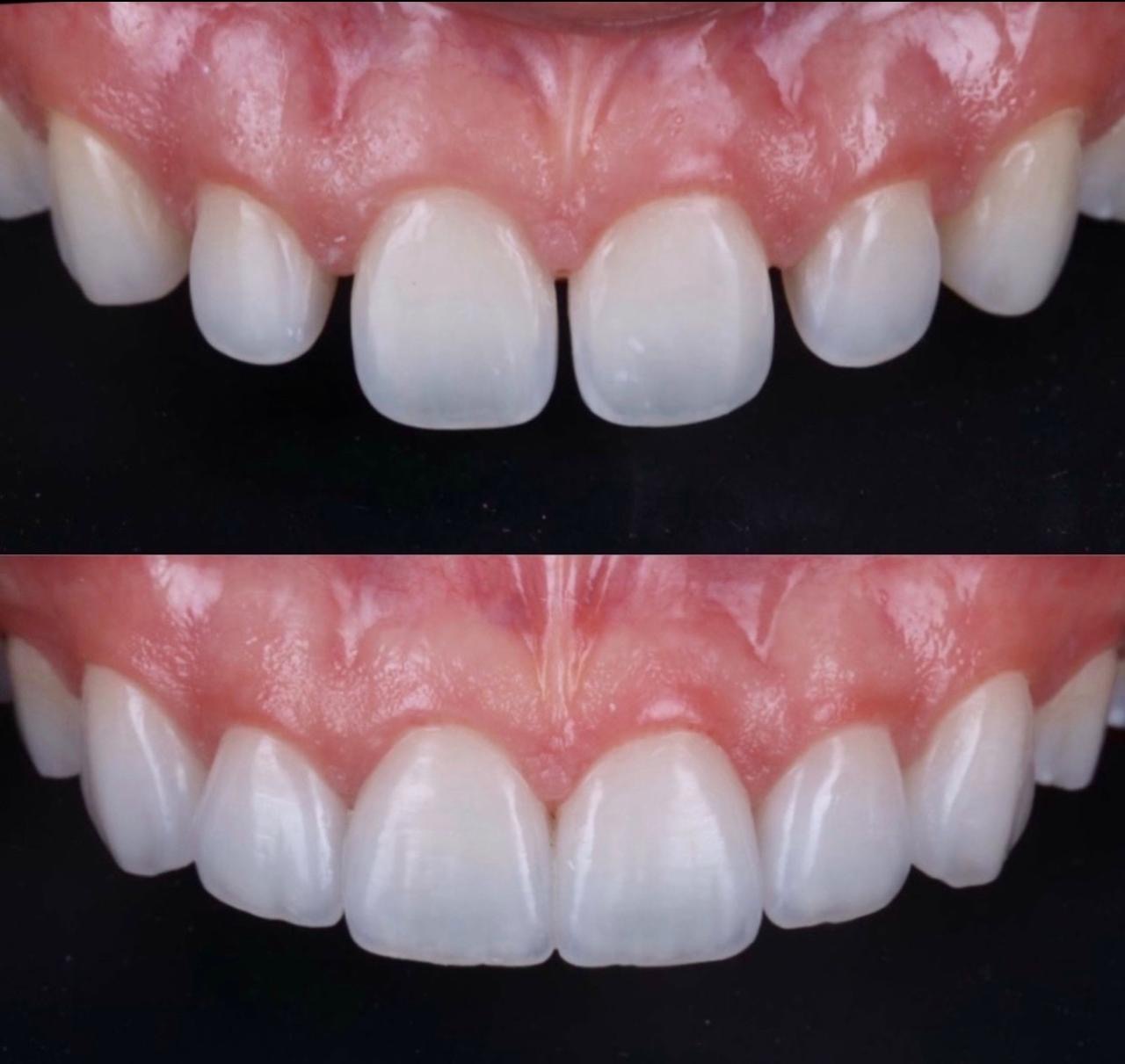 São laminados ultrafinos de porcelana aderidos ao dente. A técnica foi desenvolvida para cobrir a superfície frontal dos dentes de uma maneira conservadora, com a intenção de alterar forma, contorno, textura e cor, proporcionando assim um sorriso harmônico. Além de melhorar a estética do sorrio, as lentes de contato dentais também restabelecem função e resistência aos dentes.